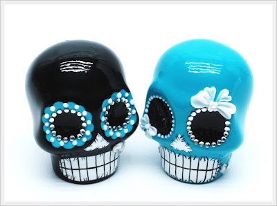 Very stylish set of ceramic skull salt and pepper shaker